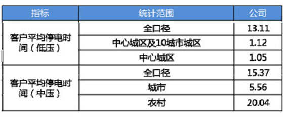 2018年公司客戶平均停電時間(低壓)為13.11小時/戶,同比下降34.7%。 中心城區(qū)及10城市城區(qū)客戶平均停電時間(低壓)為1.12小時/戶,同比下降53.9%;公司客戶平均停電時間(中壓)完成值為15.37小時/戶,同比下降9.3%,其中城市和農(nóng)村客戶平均停電時間(中壓)分別為5.56小時/戶和20.04小時/戶。