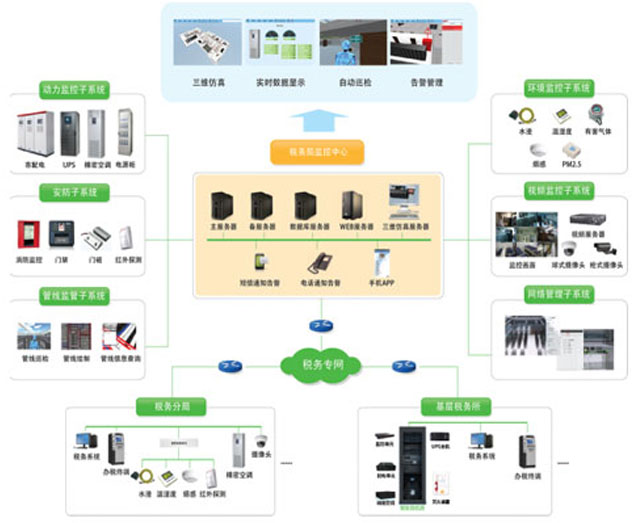 煙臺市稅務局信息中心應用DF7101機房基礎設施管理系統(tǒng),將市局信息中心機房和下轄的14個區(qū)縣分局機房及若干基層分局機房進行統(tǒng)一監(jiān)控,解決了市局和縣區(qū)局之間機房監(jiān)控各自為政、信息孤島的問題。平臺對各機房動力環(huán)境監(jiān)控系統(tǒng)、門禁系統(tǒng)、視頻監(jiān)控系統(tǒng)、設備資產(chǎn)、模塊化機柜等統(tǒng)一監(jiān)控管理,并通過3D建模實現(xiàn)設備的智能巡檢,實現(xiàn)了對機房基礎設施的規(guī)范化管理,對出現(xiàn)的各類問題及時發(fā)現(xiàn)和解決,減輕運維壓力,減少因設備及環(huán)境問題對辦稅業(yè)務的影響。